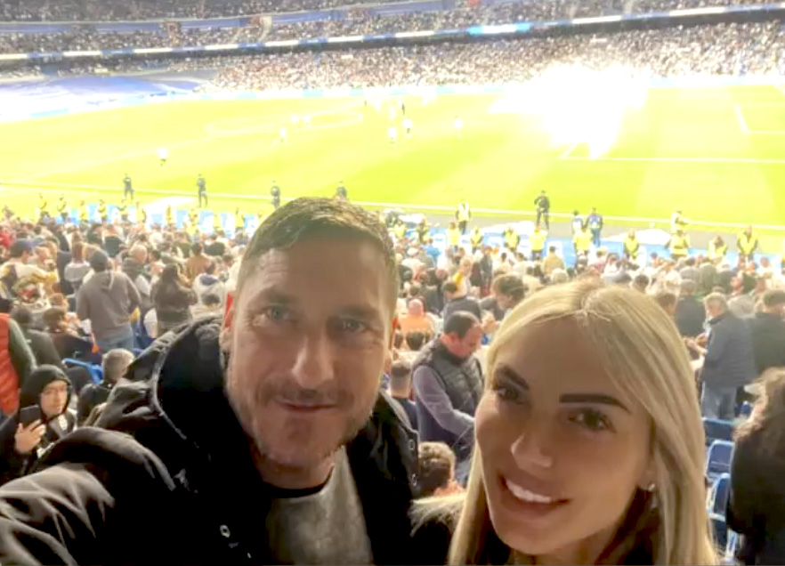 Francesco Totti e Noemi Bocchi sono volati a Madrid per il weekend. L’ex calciatore e la sua nuova compagna hanno scelto la capitale spagnola per trascorrere qualche ora insieme fuori dall’Italia e lui l’ha portata anche allo stadio Bernabeu a vedere una partita del Actual Madrid, ospite dell’allenatore Carlo Ancelotti. Il 46enne ha condiviso un selfie che lo ritrae proprio accanto alla 34enne sugli spalti della famosa struttura sportiva madrilena.